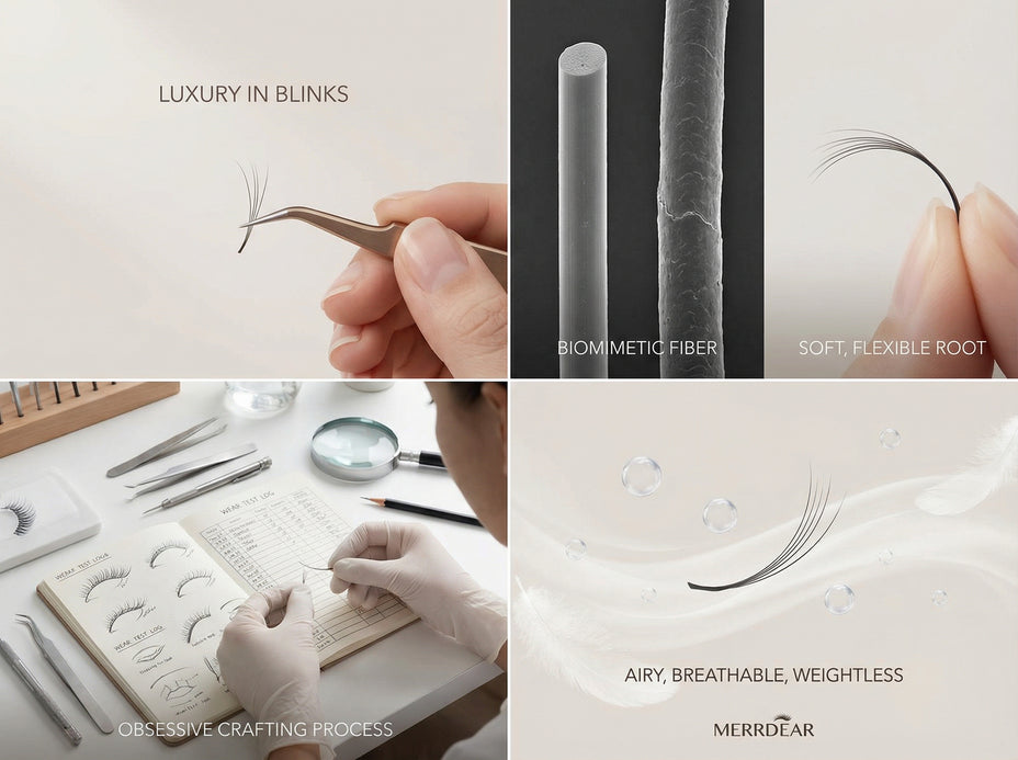 Behind every box of Merrdear lashes lies a process of obsession. We have conducted hundreds of wear tests, polishing every detail to ensure our lashes are airy, breathable, and virtually weightless.