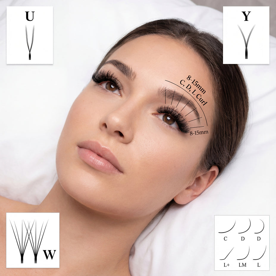 Our collection offers a precision-engineered spectrum of curls (C, D, L) and lengths (8-15mm) to suit every eye shape. Beyond the classics, explore our specialized U, Y, and W shapes for instant volume and texture. Whether crafting a natural look or dramatic flair, every lash delivers consistent, lightweight perfection.